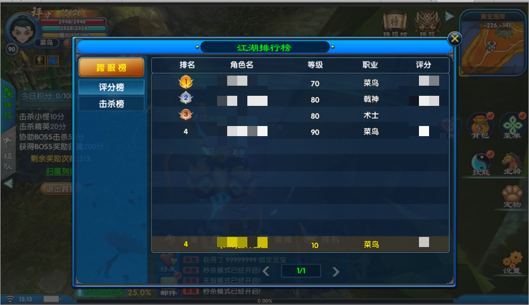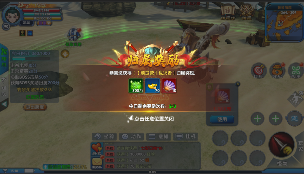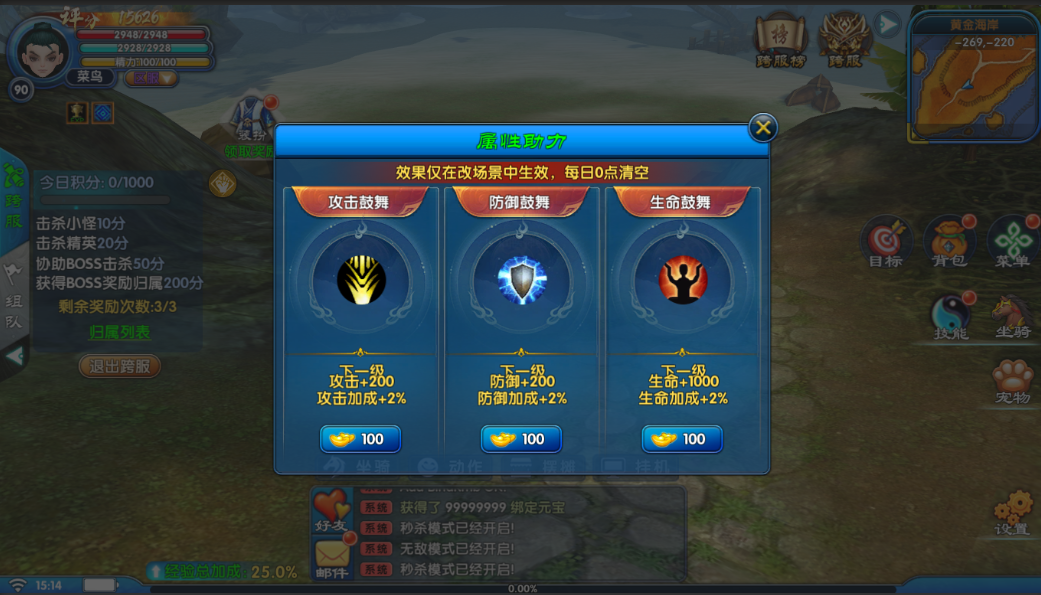 各位少侠久等!继上一轮跨服风云初现端倪之后,今天我们再度携最新开发进度而来,为你揭开「跨服挑战系统」更深一层的内幕!结合目前开发中实机画面,带你先睹为快! 本文仅供参考 开发阶段实际以游戏更新上线为准 开放时间:每日12:30 - 22:30。 场景特性:跨服场景为危险地图,PK不增加善恶值,自由交战无惩罚。 注:更多跨服系统开放条件请以实际游戏更新为准。 跨服场景内设有多种小怪、精英、首领,击杀可获得大量积分与珍稀奖励。跨服玩法中获得的战场积分可用于兑换道具。具体积分获取途径:击杀小怪、精英、协助BOSS击杀、获得BOSS经历归属。 这里需要注意的是BOSS奖励结算给归属时间最长的玩家,这意味着,智取与持久同样重要!是选择速战速决,还是稳扎稳打?全凭你的战略布局。另外每人每日最多可获得3次归属奖励,请合理安排挑战节奏。 你在跨服激战中积累的每一分荣誉,都可在跨服商店中兑换为实实在在的成长助力。跨服商店中可使用积分兑换多种稀有道具及法宝宝箱。合理规划积分使用,最大化你的跨服收益! 在跨服场景中,你可购买攻击鼓舞、防御鼓舞、生命鼓舞等BUFF,获得高额属性加成,但效果仅在跨服场景生效,每日0点清空。少侠们可根据战局走向及自身需求,灵活搭配使用,关键时刻或能扭转战局! 目前,跨服系统已进入最后调试阶段,更多关于玩法机制、首领情报、积分体系的细节,在上线后诚邀各位少侠前来挑战,共同打磨这一全新的武林试炼!